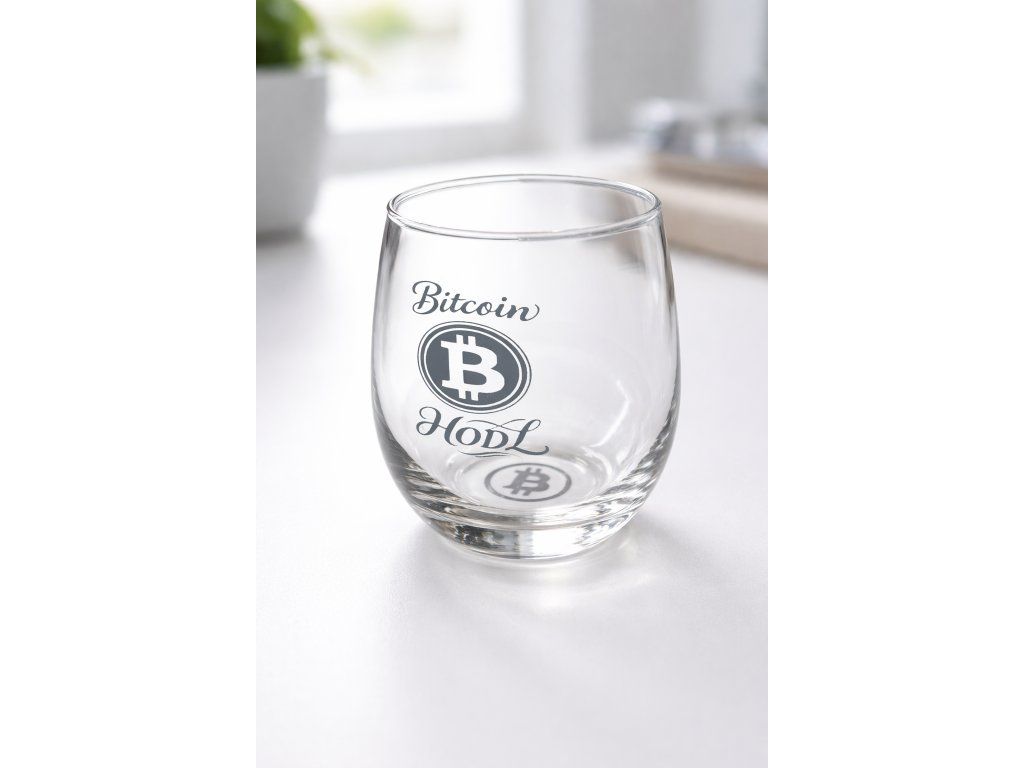 Bitcoin sklenička na whisky „HODL“ Gravírovaná sklenička s Bitcoin logem | vhodná do myčky